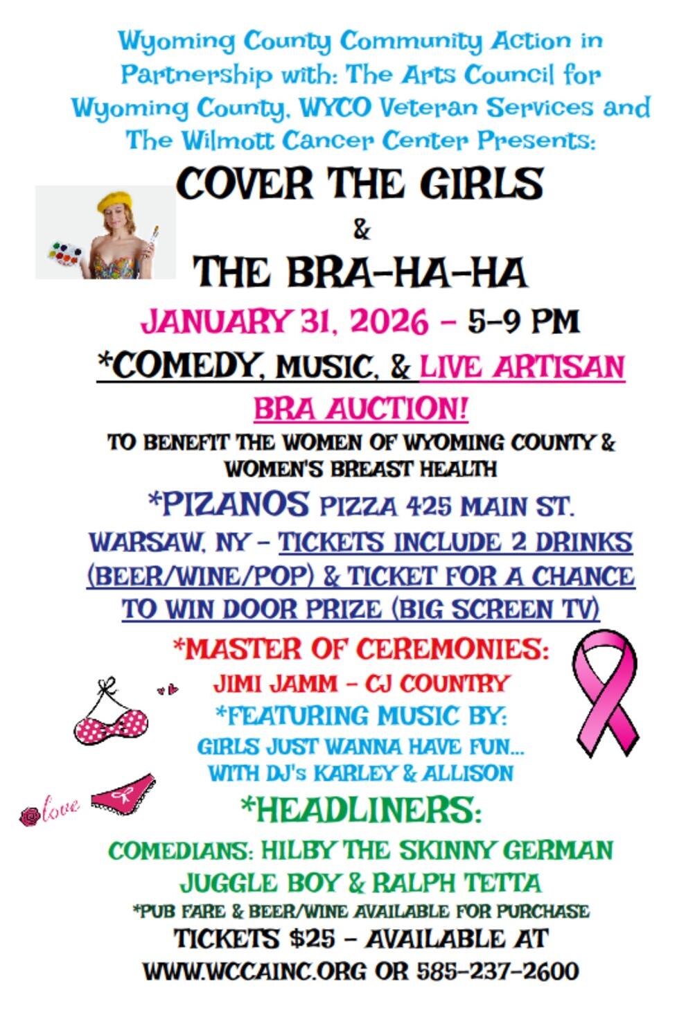 Tickets available now, go to https://ticketstripe.com/CovertheGirlsBra-Ha-Ha or call 585-237-2600. Tickets are going fast so don’t wait!